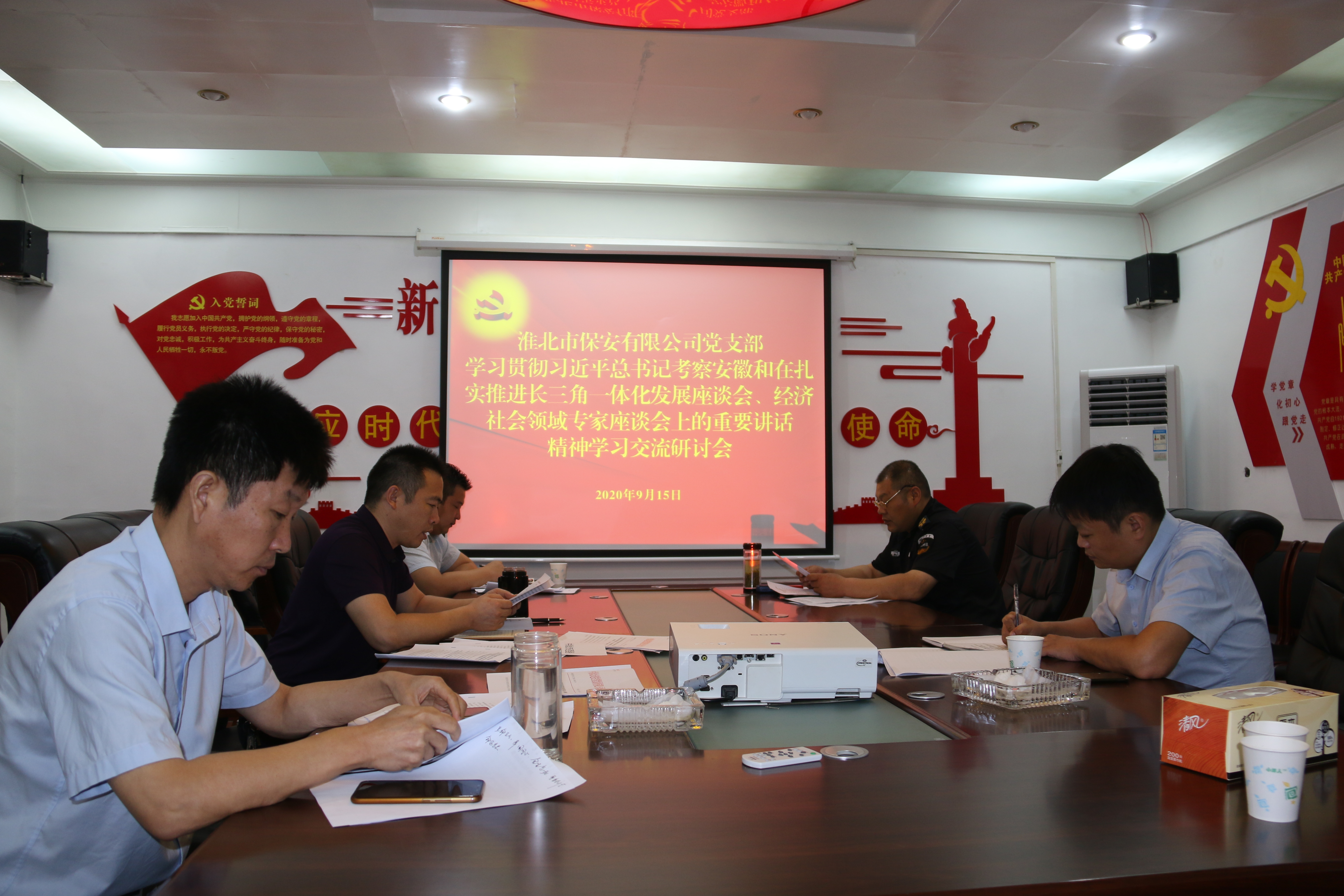 9月15日上午,保安公司黨支部在公司三樓會議室召開支委擴大會議,傳達學習貫徹集團公司意識形態工作有關文件精神、《關于兩起群眾身邊腐敗和不正之風問題的通報》,學習《淮北市保安有限公司黨支部關于深入學習宣傳貫徹習近平總書記考察安徽和在扎實推進長三角一體化發展座談會上的重要講話精神的落實方案》,并對下一步貫徹落實工作進行安排部署。