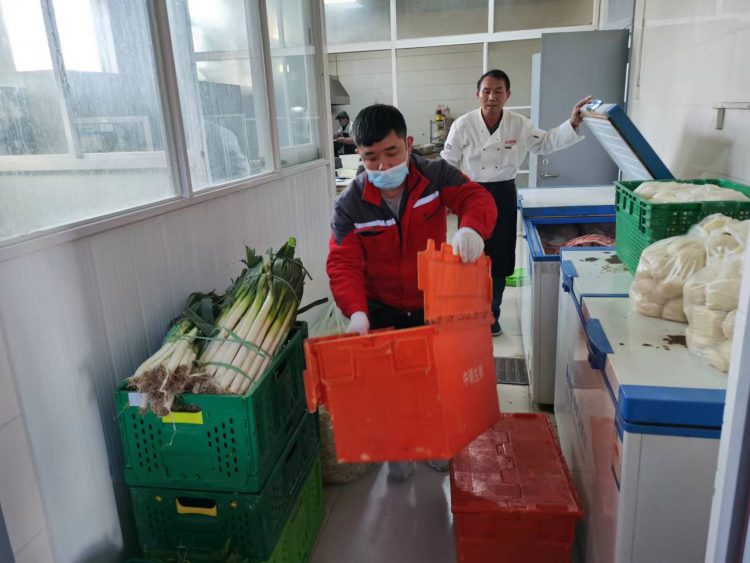來到疫情防控卡點后,“黨員突擊隊”成員在做好防護工作的同時,積極對接濉溪縣中瑞生鮮配送公司人員,仔細核對好物資數量及重量,在最短的時間內將生活物資運送到通鳴公司食堂內,及時高效的完成了本次突擊任務,同時也確保了通鳴礦業(yè)的生產、生活正常運轉。