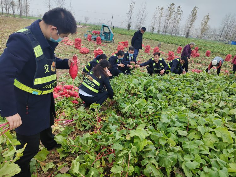 今年11月正值蘿卜上市的關鍵時期,可是偏偏遇上疫情來襲,愁壞了臨渙鎮前袁樓村的農戶,因缺少勞動力,銷售渠道也減少,蘿卜滯銷。堅守在S202收費站的黨員干部了解到該情況后,在積極應對疫情防控的同時,主動對接農戶,收費之余組織站內員工來到田間地頭,在農戶的指導下,協助采收、打包、搬運,大家忙得熱火朝天。本次助農活動,不僅收獲了勞動豐收的喜悅,勞作之余,在場的每名員工還自掏腰包購買滯銷蘿卜,用實際行動為群眾辦實事,辦好事,為鄉村振興貢獻了微薄之力,受到當地百姓的一致好評。