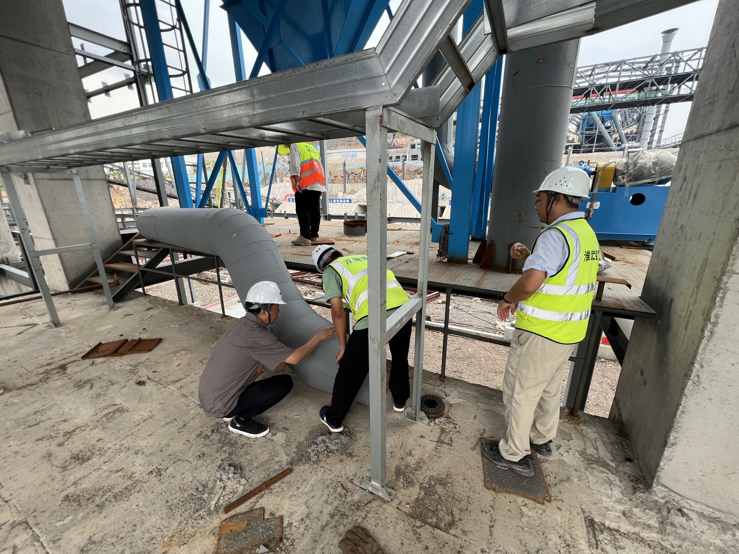 劉鵬總經理一行先后對儲存發運B區鋼結構、儲存發運A區至B區廊道、三篩至儲存發運區鋼結構等區域的安全生產管理、現場施工作業、已完工工程安全質量等方面進行了仔細查看和詳細了解,并與現場管理人員進行深入交流。