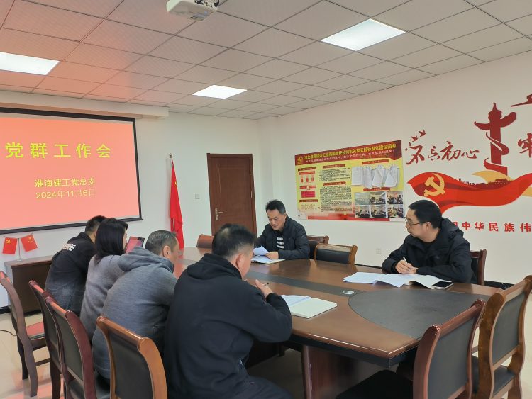 11月6日下午,淮海建工公司召開四季度黨群工作會,會議對前三季度的黨建工作進行了盤點總結,并對四季度黨建工作進行安排部署:一是提高政治站位,深入學習宣傳貫徹習近平總書記考察安徽重要講話精神及黨的二十屆三中全會精神,力求學深悟透、入腦入心。二是壓實黨建工作責任,對照年度黨建重點工作落實情況,逐項檢查反饋,各支部要不折不扣完成全年目標任務。三是深化黨建融合,要立足實際用好“黨建+”模式,真正提高黨建工作質效。
