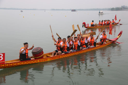 當(dāng)日,市建投集團(tuán)、田徑愛好者、體育傳媒等12支參賽龍舟隊(duì)在南湖上展開激烈角逐,當(dāng)?shù)乇姸嗍忻裨诤厼檫x手們吶喊助威,感受濃濃的端午民俗。